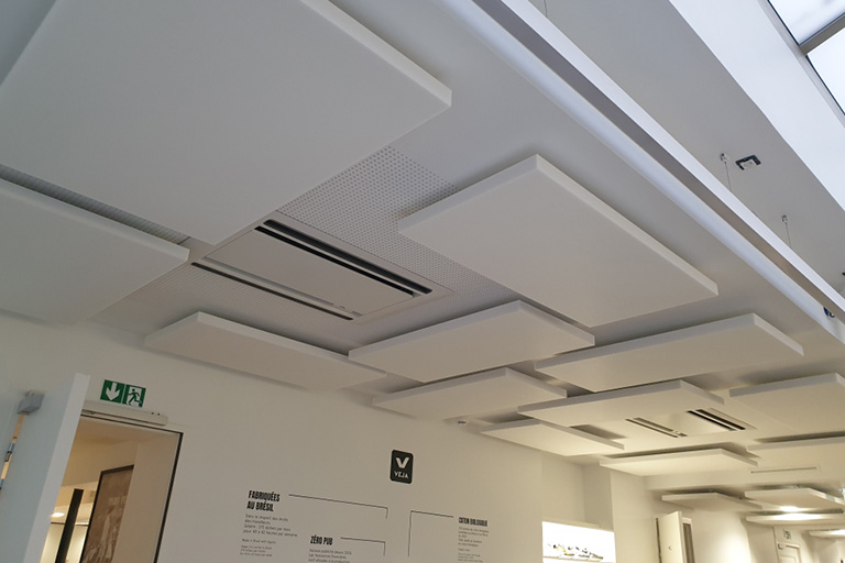 Écho et la réverbération peuvent être particulièrement gênants dans les espaces où le son rebondit sur les surfaces dures, créant une confusion sonore et réduisant la clarté des conversations. Le traitement acoustique, tel que l’installation de panneaux absorbants, peut réduire ces phénomènes en absorbant une partie du son et en limitant sa réflexion.